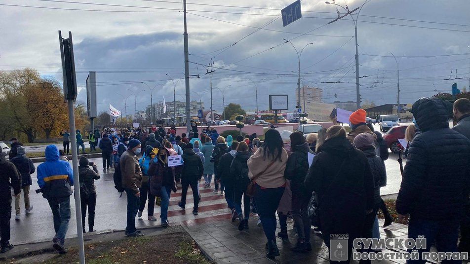 Представители малого и среднего бизнеса, не желающие выполнять требования коронавирусного карантина, собравшиеся на сегодняшнюю (9-го ноября) акцию протеста возле фонтана Садко к 10:00, под лозунгом «Хочем працювати, а не жебракувати», перекрыли таки улицу Героев Сумщины.