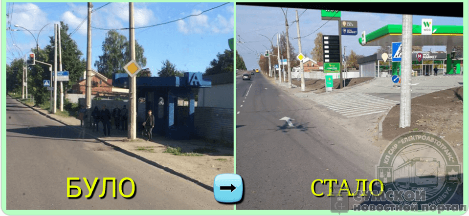 Как видно на фото, вместо остановки общественного транспорта, теперь красуется элегантный пешеходный переход возле автозаправки «ВОГ».