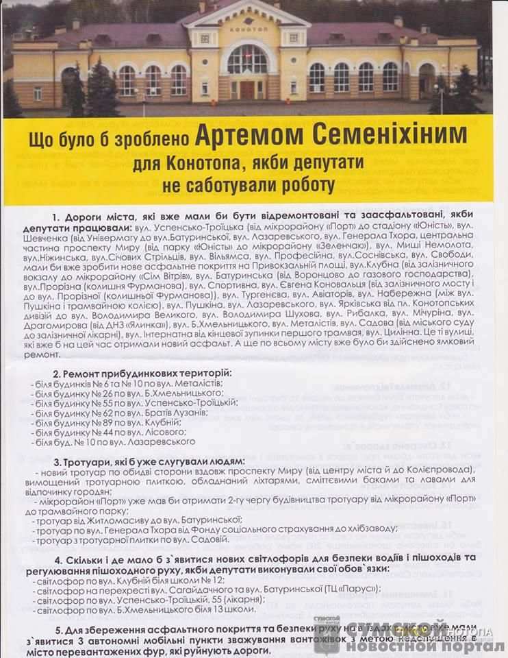 Ну а как, скажите, можно еще расценить произошедшее вчера, когда из стоящей в центре города «Свободовской» палатки, всем желающим раздавали иллюстрированные буклеты, название которых примерно так и звучало «Что было бы, если бы Артему Семенихину не мешали депутаты».