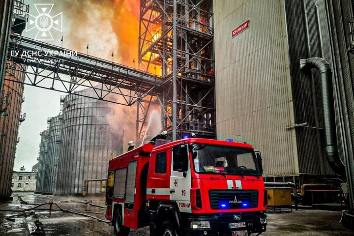 У Роменському районі Сумщини в суботу спалахнула зерносушарка заввишки 28 метрів, заповнена насінням соняшника.