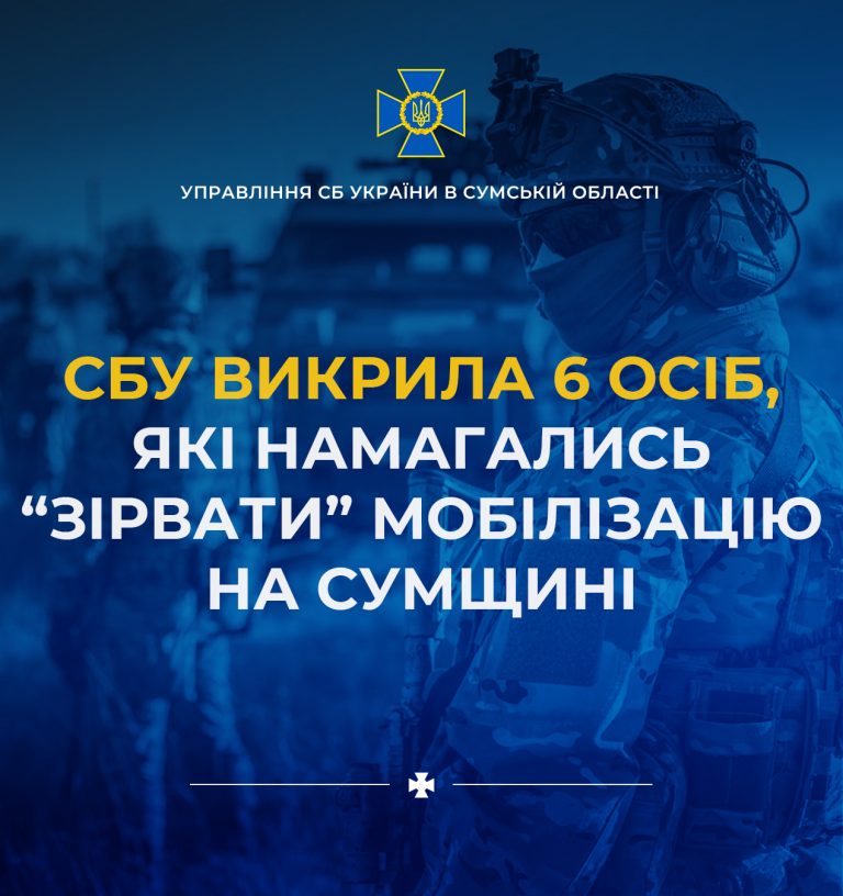 Служба безпеки викрила ще 6 дописувачів Телеграм-каналів, які намагалися зірвати мобілізацію через поширення даних про заходи представників територіальних центрів комплектування та соціальної підтримки у Сумській області.