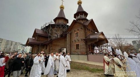 У неділю, митрополит УПЦ Московського патріархату Євлогій, який називає себе “Сумським і Охтирським”, провів освячення і Божественну Літургію новозбудованої споруди, а також вручив від імені головного духовного проповідника Москви в Україні Митрополита Онуфрія, церковний орден цієї московської конфесії протоієрею Вячеславу Темному.