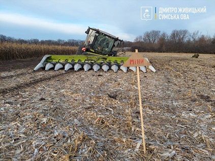 Надзвичайна подія сталася сьогодні (30 листопада) вранці, коли комбайнер поводив роботи на кукурудзяному полі, що вже мав запобіжну табличку “Міни!”.