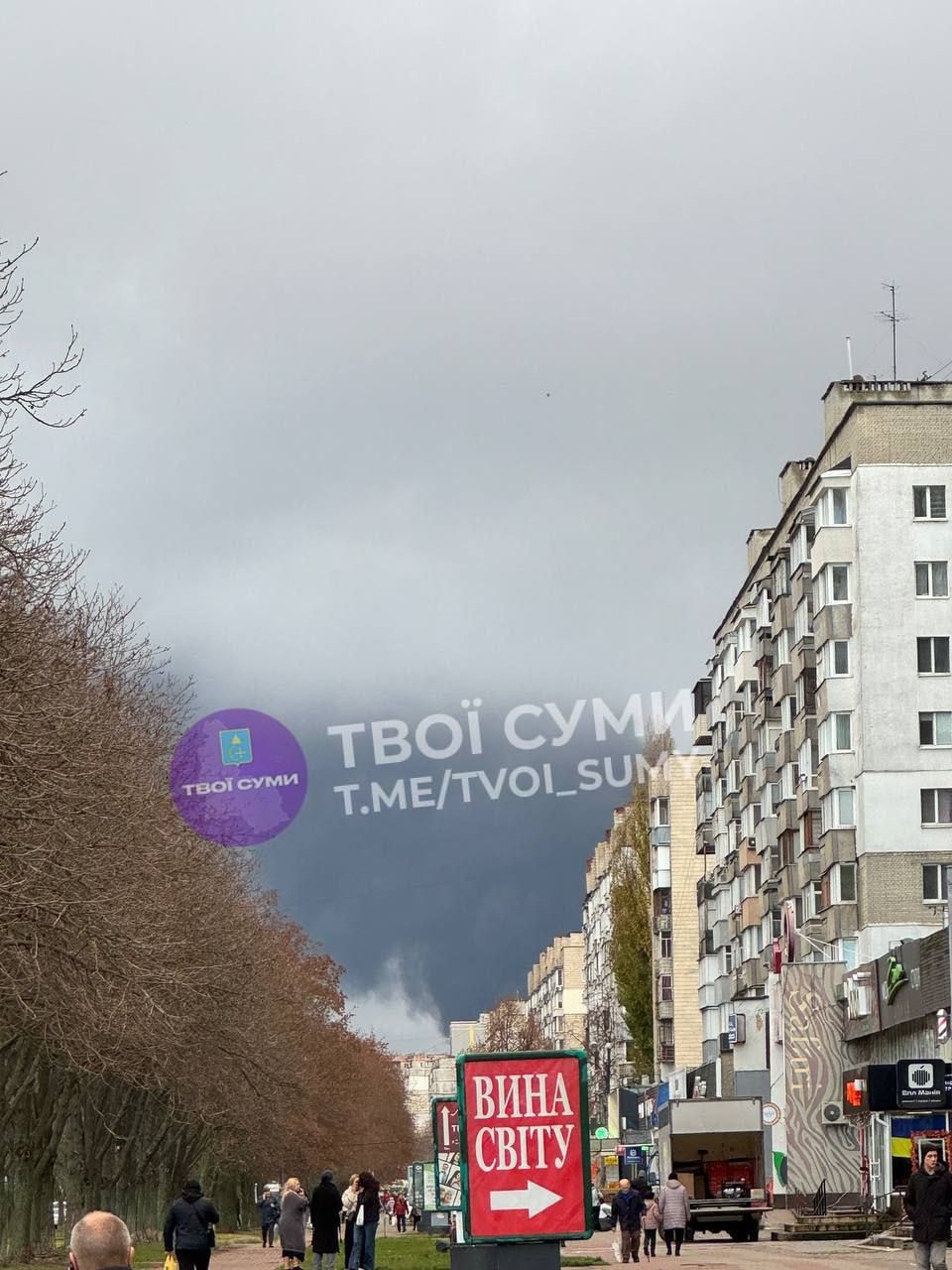 В результаті вибуху бойової частини дрону (імовірно “Італмас”) виникла пожежа, яку могли бачити багато сумчан і сильне задимлення.